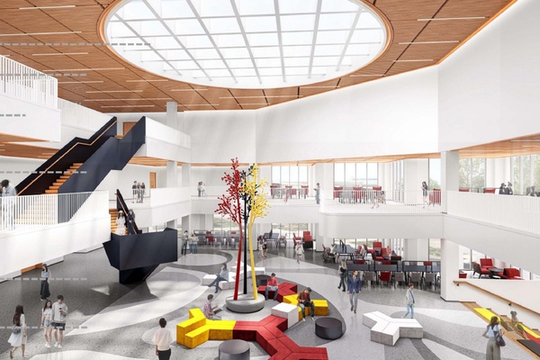 Our beautiful central atrium serves as a versatile space for meetings, social interactions, and relaxation. It is designed to foster a sense of connection and engagement among students and staff, encouraging collaboration and enhancing the school’s communal spirit.